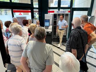 Seniorinnen und Senioren von Pro Mendig haben das Rathaus der Verbandsgemeinde Mendig besucht, um unter anderem das neue Bürgerbüro und den sogenannten Amt-O-Mat kennenzulernen.