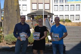 Andreas Persie, Janine Pitzen und Oberbürgermeister Dirk Meid präsentieren die neuen Broschüren (v.l.n.r.)
