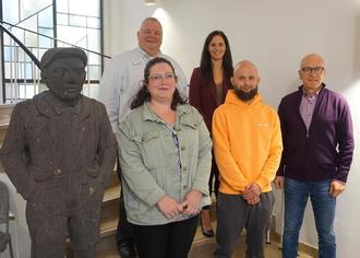 Personalratsvorsitzender Wolfgang Goeken, Angelina Badak, Büroleiterin Jasmin Alter, Sascha Lepges und Oberbürgermeister Dirk Meid (v.l.n.r.)