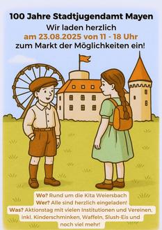 Mayen. Am Samstag, den 23. August, feiert das Stadtjugendamt Mayen gemeinsam mit vielen Institutionen und Vereinen sein 100-jähriges Bestehen- und lädt alle Familien, Bürgerinnen und Bürger herzlich ein, diesen besonderen Anlass gemeinsam zu feiern.