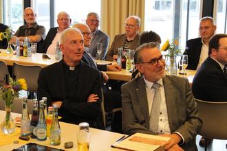 (Von links) Domkapitular Benedikt Welter und Werner Steffens folgten mit Freude dem Bühnenprogramm.
