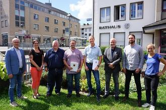 V.l.n.r.: Oberbürgermeister Dirk Meid, Svenja Schäfges-Zimmer, Wolfgang Goeken, Dirk Petzenhauser, Jürgen Dorn, Gerd Schlich, Michael Brodam und Ina Rüber-Teke