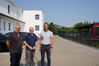 Oberbürgermeister Dirk Meid besuchte gemeinsam mit Bernhard Hermann vom städtischen Hochbauamt den Standort und bedankte sich stellvertretend bei Thomas Volz für die mutige Entscheidung, das lange leerstehende Bahnhofsgebäude aus dem Bestand der Bahn zu übernehmen.