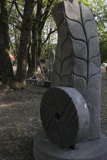 Eine wunderschöne Stele hatte Thomas Müller, Skulpturen haben Werner Geilen und Knut Hüneke geschaffen. Geilen hat, ebenso wie Hüneke in seine Skulptur Ähren eingeschlagen, und passend dazu einen Mühlstein gefertigt. „Beides gehört zusammen“, berichtet Geilen mit Blick auf das Mühlsteinrevier zwischen Mayen, Ettringen, Kottenheim und Mendig mit dem Hafenbezirk Andernach, das Teil des Unesco Weltkulturerbe werden möchte. Während Werner Geilen seine Skulptur nebst Mühlstein mit Hause in die Vulk