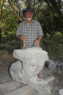 ETTRINGEN. (EB) Die Luft im ehemaligen Steinbruchrevier unweit der L 82 war kürzlich von rhythmischen Schlägen von Hammer auf Meißel auf Stein und von Sägegeräuschen erfüllt. Für die Teilnehmer des 4. Steinbildhauer Symposiums war es ein besonderes Erlebnis vor den Toren von Ettringen mit Gleichgesinnten unter freiem Himmel zu arbeiten und dabei Kunst aus großen Basalt- oder Tuffsteinblöcken zu formen.