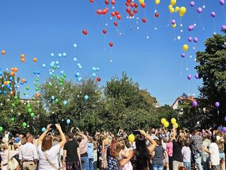 Bevor die Kinder gemeinsam mit ihren Klassenleitungen in ihr neues Schuljahr starteten, ließen sie mit Wünschen bestückte bunte Luftballons in den Himmel steigen.