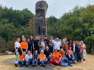 MAYEN. „JAG meets Feuerwehrmöhnen“. Unter diesem Motto trafen sich die beiden Mayener Fastnachtsvereine „Junge Alte Große“ und „Feuerwehrmöhnen“ nach einer dreijährigen Pause endlich wieder zu ihrer gemeinsamen Sommerwanderung. Zu ihrer Überraschung wurden die Mayener Jecken an der Jakobussäule vom Präsidenten der Alten Großen Mayener Karnevalsgesellschaft, Uli Walsdorf und der Ex-Prinzessin Tina der I. mit einem dreifachen „Maye Mayho!“ empfangen. Nach einer Stärkung und kurzweiliger Rast kehrte die fröhliche Wandertruppe in das Gasthaus Hubertusruh ein und ließ den schönen Tag in gut gelaunter und karnevalistischer Stimmung ausklingen. Die nächste gemeinsame Wanderung ist im Dezember geplant.