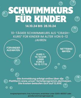 Der Kurs findet im Nettebad Mayen vom 14. - 28. Oktober statt. Der kostengünstigere Schwimmkurs in den Herbstferien kann durch eine Erhöhung der Landesmittel ermöglich werden.