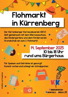 Nachdem im vergangenen Jahr der erste Flohmarkt in Kürrenberg ein voller Erfolg war, ist es bald wieder soweit, die Kartons zu packen: Denn am 14. September organisiert der Kürrenberger-Karnevals-Verein (KKV) gemeinsam mit dem örtlichen Elternausschuss des Kindergartens und dem Förderverein der Grundschule erneut einen Flohmarkt. In der Zeit von 10:00 bis 18:00 Uhr können Besucherinnen und Besucher nach Herzenslust stöbern und dürfen sich auf einen schönen Tag im und um das Bürgerhaus sowie auf dem Schulhof in Kürrenberg freuen.