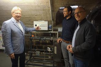 V.l.n.r.: Rolf Schäfer, Helge Lippert und Oberbürgermeister Dirk Meid freuen sich über den neuen Fernwärmeanschluss