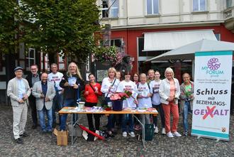MAYEN. Auf Gewalt in engen sozialen Beziehungen wollte das „Mayener Forum gegen Gewalt in engen sozialen Beziehungen auf dem Mayener Marktplatz hinweise. Vor dem Alten Rathaus verteilten sie Infomaterialen, kamen mit den Menschen ins Gespräch und überreichten jeder Frau eine Rose vom Blumenhaus „Blumentopf“ in Kottenheim mit einem Hinweiszettel auf die Homepage des Mayener Forums gGesB, damit Gewalt in engen sozialen Beziehungen in Mayen, auf dem Maifeld, in Mendig und in der Verbandsgemeinde Vordereifel kein Tabuthema bleibt und Frauen wissen, wo sie sich im Notfall hinwenden können.