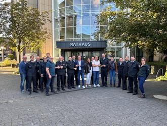 Jörg Lempertz, Bürgermeister VG Mendig, übergab die neuen Digitalen Meldeempfänger zusammen mit den Beigeordneten, Joachim Plitzko und Ralf Kraut, sowie Vertretern und Vertreterinnen der Verbandsgemeinderatsfraktionen an die Wehrleitung der Verbandsgemeinde und die Wehrführungen der örtlichen Feuerwehren.