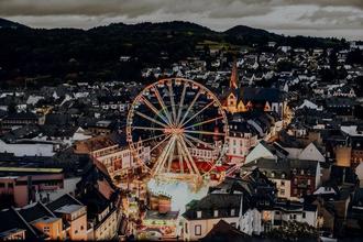 Mayen. Ein außergewöhnliches Erlebnis erwartet Weinliebhaber und Genießer am Donnerstag und Freitag, 9. und 10. Oktober, vor dem Start des 620. Lukasmarktes: Das romantische Riesenrad „Roue Parisienne“ dient als stilvoller Veranstaltungsort für eine exklusive Weinprobe mit Flying Dinner. Die 18 geschlossenen Gondeln bieten jeweils Platz für vier Personen und ermöglichen ein unvergessliches Erlebnis hoch über der Stadt.