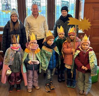 „Schule statt Fabrik – Sternsingen gegen Kinderarbeit“ heißt das Leitwort der 68. Aktion Dreikönigssingen, bei der die Sternsingerinnen und Sternsinger bundesweit von Tür zu Tür ziehen. So waren die Sternsinger – Kinder der Kita St. Nikolaus – auch im Rathaus der Verbandsgemeinde Mendig zu Gast.