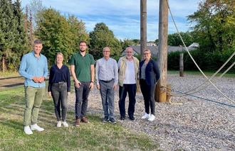 Mitglieder der Steuerungsgruppe begutachten den Niedrigseilparcours der Albert-Schweitzer-Realschule Plus