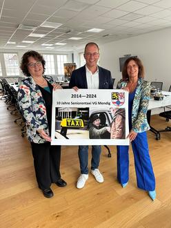 Das Seniorentaxi der VG Mendig ist seit zehn Jahren ein Erfolgsmodell – sehr zur Freude von (von links) Bettina Cornely, Seniorenbeauftragte VG-Verwaltung Mendig, Jörg Lempertz, Bürgermeister VG Mendig, und Ute Dernbach, Teilbereichsleiterin Familien, Schulen und Soziales VG-Verwaltung Mendig.