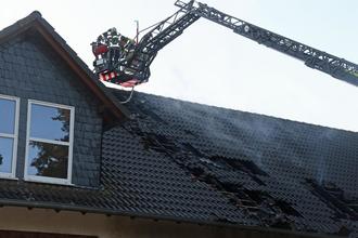 Mittels Drehleiter öffneten die Feuerwehr das Dach