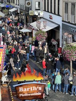 Die Traditionsbäckerei des Schaustellerbetriebs Thorsten Dierichs erfreut seit 120 Jahren mit Köstlichkeiten ihre Stammgäste. „Ich selbst bin seit 36 Jahren hier in Mayen mit dabei“, erzählt Inhaberin Heike Dierichs, während sie frischgebrannte Mandeln zubereitet. „Wir legen größten Wert auf die gute Qualität der verwendeten Zutaten.“ Fast ebenso lange ist auch Werner Weeber junior aus Bad Kreuznach mit seinem Kinderfahrgeschäft „Zauber Welt“ auf dem Markt dabei. „Unsere Familientradition währt insgesamt seit nahezu 175 Jahren.“ Bester Laune zeigt sich Wolfgang Wingender aus Mayen, während das Lukasmarkt-Urgestein das Marktgeschehen beobachtete. „Mal schauen, wie es in diesem Jahr wird.“ Nur wenige Meter von Wolfgang Wingender’ Kinderachterbahn, dem Ring Renner, stieß eine Frauenclique aus Mayen mit einem kühlen Blonden auf den Lukasmarkt an. „Wir machen das seit vielen Jahren schon so. Pünktlich um 11 Uhr feiern wir unseren persönlichen Lukasmarktauftakt. Das Marktgeschehen bedeutet für uns ein großes Stück Heimat.“ Nach insgesamt zehn Schüssen hielt Lukas aus Bonn drei Rosen für seine Liebste in seinen Händen. „Die Rosen haben für mich eine besondere Bedeutung“, meinte Freundin Saskia augenzwinkernd. „Es ist mega schön hier.“ Und was war für eine Gruppe Jugendlicher am Samstag das Schönste? „Wenn es, wie beim Breakdancer, oder bei der Petersburger Schlittenfahrt so richtig schön rund geht“, erklärte Jan aus Mayen. Fast gleichzeitig hatten wenige Meter weiter wie Fin und Toni aus Mendig in einem Bus der „Zauber Welt“ Platz genommen, während Bennett, Charlotta und Mattes sich ihre Gewinne fürs erfolgreiche Dosenwerfen aussuchen durften. Am verkaufsoffenen Sonntag wurde die Fußgängerzone vor lauter strahlender Besucher gut frequentiert.