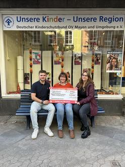 Spendenübergabe Kinderschutzbund Ortsverband Mayen und Umgebung, v.l.n.r. Marius Luxem, Rebecca Reuter, Zoe Mertz