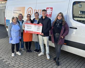 Nun durften die Organisatoren der Veranstaltung Marius Luxem und Zoe Mertz von der Jugend- und Auszubildenden Vertretung der Stadt Mayen die hohe Spendensumme übergeben. Die drei im Vorfeld sogfältig ausgesuchten Mayener Organisationen die Tafel, das Tierheim und der Kinderschutzbund erhielten jeweils 900 €.
