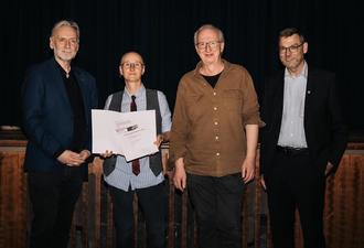Verleihung Kinoprogrammpreis an das Corso Kino: v.l.n.r.: Kulturstaatssekretär Jürgen Hardeck, Friederike Mühlhäusler, Thomas Schneckenburger, Beigeordneter Thomas Schroeder