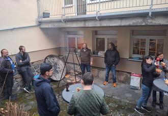 Der Riedener Jugendraum wurde mit Leckerem vom Grill und kühlen Getränken wiedereröffnet. Aus Datenschutzgründen sind keine Kinder und Jugendlichen auf dem Foto.