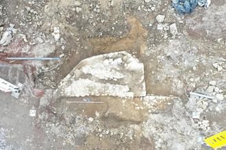 Drohnenaufnahme des Befundes - Halbturm mit anschließender Stadtmauer