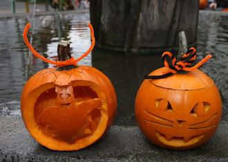 Zum ersten Mal in ihrem Leben versuchte eine zweifache Mutter aus Bonn, die in einer Zeitung von der Mayener Halloween-Aktion gelesen, einen Kürbis ganz vorsichtig mit einem Messer zu öffnen, um das Fruchtfleisch und die Kerne heraus zu löffeln. Zuvor hatte sie die Form des Deckels zackig vorgezeichnet. „An Halloween stellen wir in die Mitte des Kürbis eine Kerze und zünden sie an, damit wir die bösen Gespenster fernhalten“, erzählte die Mutter ihren beiden Töchtern. „Wir nennen unseren Kürbis einer irischen Sage des 19. Jahrhunderts zufolge Jack O’Lantern.“
