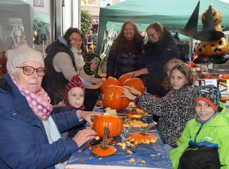 Eifrige Kinder beim Kürbisschnitzen im Brückenviertel