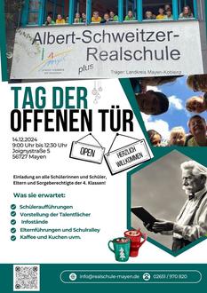 Alle Interessierten sind herzlich eingeladen, am Samstag, den 14. Dezember 2024 um 9:00 Uhr die Albert-Schweitzer-Realschule plus zu erkunden.