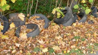 Bislang unbekannte Täter entsorgten Altreifen illegal am Laach Graben in der Nähe des Mendiger Schwimmbads.