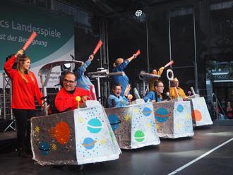 Die Rollstuhltanzgruppe „Konfetti Dancers“ aus dem Caritas Zentrum in Mendig durfte die abendliche Veranstaltung auf dem Koblenzer Münzplatz eröffnen. Das Publikum hieß die Gruppe mit Applaus willkommen und feierte ausgelassen zu ihrem Tanz.