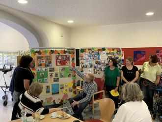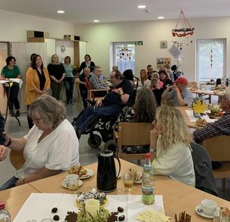 Unterstützt von den Mitarbeitenden, präsentierten die Bewohner/innen bildhaft den Wohn- und Lebensalltag im Haus. Auch das Angebot der hauseigenen Tagesförderung wurde anhand einer großen Fotowand vorgestellt. „Unsere Tagesförderung ist nicht nur individuell, sondern bietet auch Ausflüge in die Natur sowie die Teilnahme an Sport- und Kulturveranstaltungen“, so Stephanie Pohl, Bereichsleiterin Tagesförderstätten. Der gemeinsame Nachmittag bei Kaffee, Kuchen und Snacks endete mit guten Gesprächen und der Vorfreude auf weitere Treffen mit den Angehörigen und Gästen.