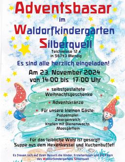 Am Samstag, den 23.11.2024 lädt der Waldorfkindergarten Silberquell zum Adventsbasar ein.