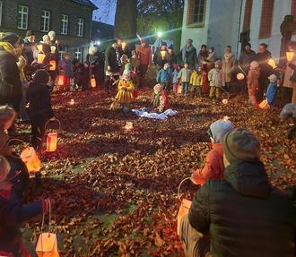 Ausgestattet mit selbstgebastelten, waldorftypischen Laternen zogen sie singend durch die Obermendiger Straßen in Richtung Kirche.