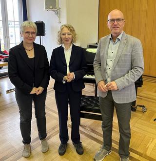 V.l.n.r.: Hildegard Hau-Strehle - Zweigstellenleiterin von Mayen der Kreismusikschule Mayen-Koblenz, Dr. Monika Burzik - Leiterin Kreismusikschule Mayen-Koblenz und Oberbürgermeister Dirk Meid