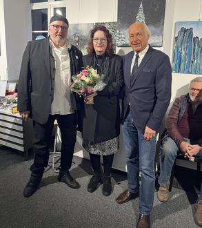 Bürgermeister Bernhard Mauel bedankte sich für das jahrelange Engagement bei den Künstlern: v.l.n.r. Richard Frensch, Gisela Irmtrud Keiffenheim und Bürgermeister Bernhard Mauel