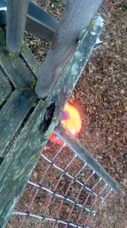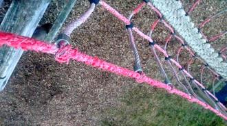 Abgenutztes Kletternetz mit Handlauf - Das Drahtseil liegt frei und beginnt zu splittern, was eine erhebliche Gefahr darstellt