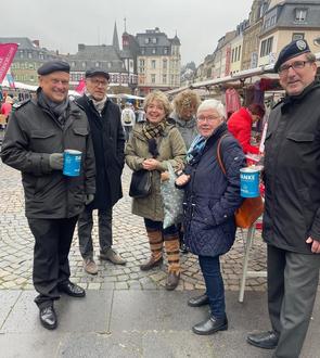 Oberst Guido Betz, Oberbürgermeister Dirk Meid und Oberst Dr. Ferdi Akaltin während der diesjährigen Haus- und Straßensammlung