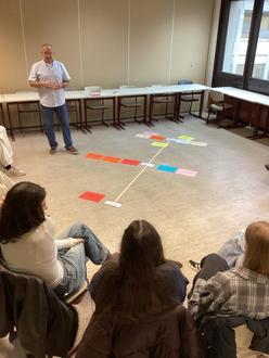 Bereits zu Beginn des Workshops wurde klar, dass der Schwerpunkt für viele Teilnehmer auf dem Thema „Selbstverteidigung“ liegen sollte. Herr Feldmeier nutzte das „Eisbergmodell“, um den Schülerinnen und Schülern zu verdeutlichen, dass jeder Mensch mit unterschiedlichen Erfahrungen kommt, von denen viele verborgen bleiben. „Was wir von anderen sehen, ist nur die Spitze des Eisbergs“, erklärte er. Diese Erkenntnis half den Teilnehmenden, die vielfältigen Reaktionen auf Gewalt- und Gefahrensituationen besser zu verstehen.