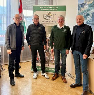 Mayen. Bereits ein halbes Jahr vor dem offiziellen Startschuss der Jubiläumstour der VOR-TOUR der Hoffnung haben erste Gespräche mit der Stadtspitze in Mayen stattgefunden. Oberbürgermeister Dirk Meid und Bürgermeister Bernhard Mauel zeigten sich erfreut darüber, dass Mayen als Stopp-Ort der Jubiläumstour 2026 ausgewählt wurde. „Wir freuen uns, dass die VOR-TOUR der Hoffnung im Jahr 2026 in Mayen gastiert und werden den Hoffnungsradlern einen gebührenden Empfang bereiten“, so Oberbürgermeister Dirk Meid. Auch Bürgermeister Bernhard Mauel freute sich sehr - er ist selbst langjähriger Hoffnungsradler und tritt regelmäßig für die gute Sache in die Pedale.