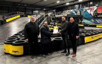 Die Betriebserlaubnis für „Airfield Art Kart“ ist erteilt (von links): Achim Grün, Erster Beigeordneter Stadt Mendig, Pascal Badziong, Erster Kreisbeigeordneter Mayen-Koblenz, Manfred Sender, Geschäftsführer TEA, und Jörg Lempertz, Bürgermeister VG Mendig.