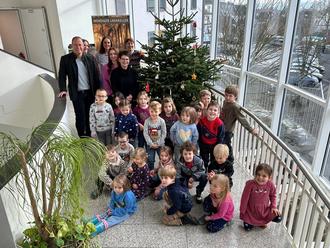 Kinder der Kitas Rieden und Volkesfeld haben – sehr zur Freude von Bürgermeister Jörg Lempertz – Weihnachtsstimmung ins Rathaus der Verbandsgemeinde Mendig gebracht.