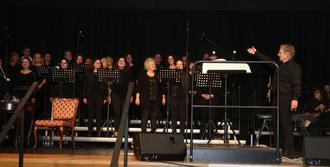 Der Chor Musica Nova mit Chorleiter und musikalischem Leiter des Musicals Gerd Schlaf
