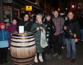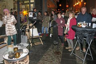 Das musikalische Programm und die gemütliche Atmosphäre beeindruckten und luden zum Verweilen ein. Für weihnachtliches Flair hatte DJ Johannes Held in der Brückenstraße gesorgt, während in der Marktstraße das Duo „Seite-an-Saite – das sind Conny (Gesang, Ukulele, Percussion) und Björn (Gitarre) - zugunsten des Vereins Mukoviszidose mit Leidenschaft und viel Gefühl Songs aus ihrem breitgefächerten Repertoire präsentierte.