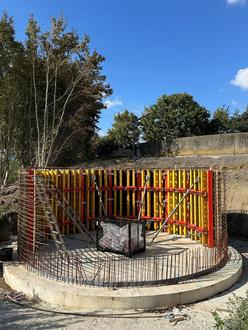 In der Zentralkläranlage läuft zurzeit eine große Baumaßnahme an: im Rahmen der energetischen Sanierung wurde mit dem Bau einer Klärschlammlagerhalle und einer Klärschlammpresse begonnen, die zum einen eine größere Lagerkapazität bedeuten und Letztere die Voraussetzungen für die thermische Verwertung des Klärschlamms schafft. Das Dach der Schlammlagerhalle wird zudem mit einer 99 kWp-PV-Anlage bestückt. Zudem wird ein neues Regenrückhaltebecken geschaffen, um eine kontrollierte Einleitung des Oberflächenwassers in den Krufter Bach sicherzustellen. Parallel werden mehrere Pumpen, Motoren und Aggregate gegen neue effizientere Anlagenteile ersetzt. Mit der Umsetzung dieser Maßnahmen geht der Zweckverband Zentralkläranlage Mendig einen notwendigen Schritt, um auch künftig die Entsorgungssicherheit für den anfallenden Klärschlamm sicherzustellen und zudem Energiekosten zu senken.