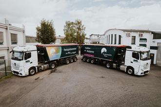 LKW´s des Unternehmens Schwab Transporte mit Werbung für die Burgfestspiele