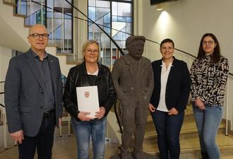 Oberbürgermeister Dirk Meid, Andrea Herrmann, Mitarbeiterin Personalabteilung Heike Ritzdorf und stellv. Personalratsvorsitzende Svenja Schäfges-Zimmer (v.l.n.r.)