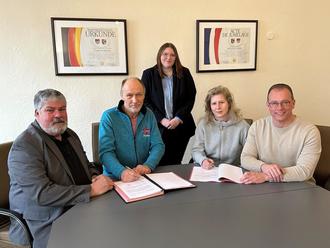 Die Verträge sind gemacht: Am 1. April eröffnen Mario Lutter (2.v.l.) und Kamila Carová (2.v.r.) die „Ratsstuben“ in Mendig sehr zur Freude von Stadtbürgermeister Achim Grün (links), Jörg Lempertz (rechts), Bürgermeister VG Mendig, und Sophie Wolf vom Liegenschaftsamt der VG Mendig.