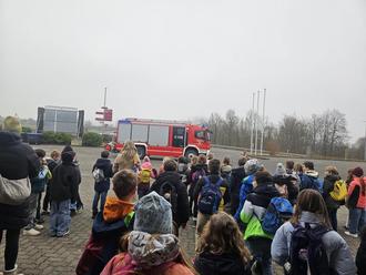Das Jahr 2026 ist für drei unserer dritten Klassen schon sehr aufregend gestartet. 64 Kinder der Klassenstufe durften einen Einblick in die Arbeit der freiwilligen Feuerwehr in Mendig erhalten. Christopher Wittig, Tobias Prochazka und Marc Pfaffinger erklärten sich dankenswerterweise dazu bereit, den Kindern ihre Aufgabenbereiche und auch ihre Ausstattung zu zeigen. In der Leitzentrale durften sie die verschiedenen Bildschirme betrachten und noch einmal die W-Fragen eines Notrufs wiederholen, um für den Ernstfall vorbereitet zu sein. Die Kinder sollten außerdem mitzählen, wie lange ein Feuerwehrmann braucht, um sich schnell seine Kleidung anzuziehen. Auch die Rauchentwicklung in einem Haus und das zuvor im Unterricht kennengelernte Verbrennungsdreieck wurden gemeinsam besprochen. Spannend war es außerdem, die Ausrüstung der Feuerwehr-Fahrzeuge einmal begutachten zu dürfen. Es war so interessant, dass die Kinder gar nicht mehr aufhören wollten, die Feuerwehrmänner mit Fragen zu löchern.